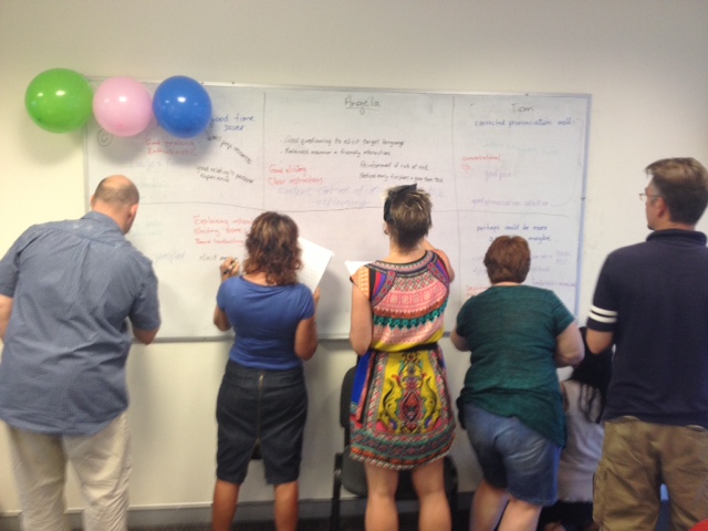 Getting feedback is one of the most useful ways of improving our teaching. The CELTA course integrates teaching throughout so trainees leave having gained valuable experience of teaching real students. The feedback process takes place after each day’s teaching and involves everyone from the teaching group. This process helps us to share ideas and develop with the assistance of our colleagues. Great work guys!