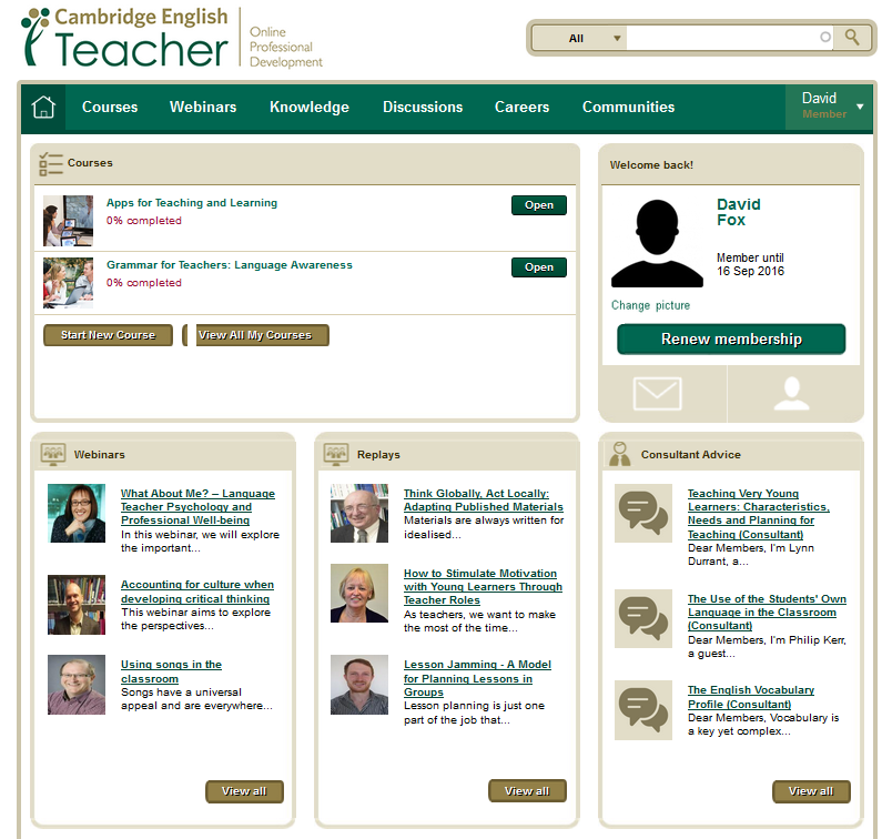The last one I would like to look at today is the Cambridge English Teacher site. This is one that tops all of the others, in my opinion, and for academic managers out there, I would seriously consider looking into institutional membership.
