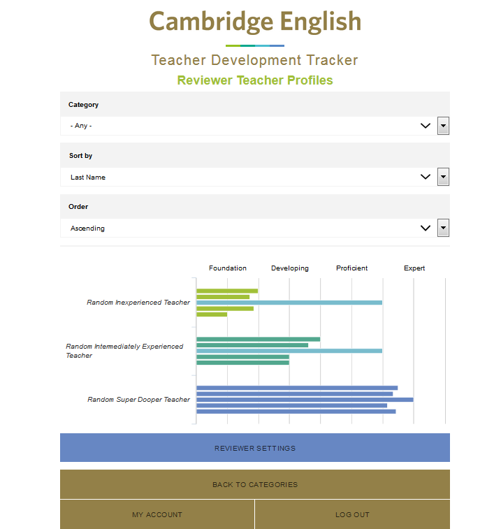 The Cambridge English Teaching Framework describes the competencies of teachers in five categories across four levels: